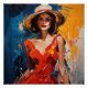 Ausdrucksstarke Pinselstriche tanzen über die Leinwand und erfassen die Frauenbewegung in einem lebendigen Cocktailkleid und Strohhut. Surreal und energisch verkörpert dieses Stück das Wesen des Expressionismus mit seinen lebhaften Farben und seiner dynamischen Komposition.
