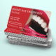 Frau lächelt. Zähne weißend. Zahnpflege. Visitenkarte