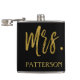 Frau Nachname Black Flask mit Gold Foil Typografie. Die Fastenflasche "Nachname" ist ein vollkommenes Brautparty- oder Flitterwochengeschenk für die Braut und passt mit der Flasche "Silver" für den Ehemann.