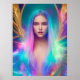 Eine wunderschöne Frau mit blauen und lila Haaren