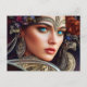 AI erzeugte eine Frau mit blauen Augen und Rüstung aus verschiedenen Metallen