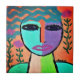 Mein farbiges abstraktes Portrait einer Frau, die auf Keramik gedruckt ist