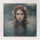AI erzeugte eine schöne Frau mit boho Blume auf ihrem Kopf schwimmt in einem Teich