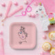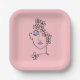 Line-Artwork eines weiblichen Gesichts mit Blume. Eine zeichnend Linie. Zeitgenössische Kunst. Frau mit Blume. Frauenportrait mit Linie auf pastellrosa Hintergrund. Minimale Frau Gesicht. Frauen in der Kunst.