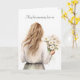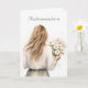 Junge Frau Aquarell mit einem dunklen Bouquet auf weißem Hintergrund zum Beileid. Alle Texte können geändert werden.
