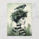 Frau mit einem Vogel auf ihrem Kopf Postkarte