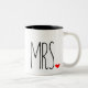 In der Tasse steht das Wort MRS, das in der Moderne geschrieben ist, wobei anstelle des Punktes ein rotes Herz steht. Perfektes Geschenk für Ihre liebste Ehefrau.