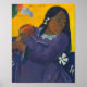 Die Frau mit Mango (1892) von Paul Gauguin ist eine faszinierende Darstellung einer Frau, die eine reife Mango hält, die in Gauguins charakteristischem postimpressionistischem Stil dargestellt ist. Das Thema des Gemäldes ist eine polynesische Frau, ihre Haltung anmutig, während sie den Betrachter ansieht, während sie die Mango in ihren Händen krabbelt. Die kräftigen, warmen Fruchtfarben kontrastieren wunderschön mit dem Hautton der Frau, was die Aufmerksamkeit auf die Harmonie zwischen der menschlichen Form und der natürlichen Welt zeichne. Der Hintergrund wird vereinfacht, sodass sich der Betrachter auf die intime Verbindung zwischen Frau und Frucht konzentrieren kann. Das Werk spiegelt Gauguins Faszination für die tahitianische Kultur und seine Erkundung der Exotik wider, die symbolische Elemente mit einem auffallenden Farbgebrauch vermischt. Verwenden Sie die Entwurfstools, um einen benutzerdefinierten Text hinzuzufügen oder das Bild zu personalisieren.