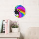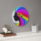 Wenn Sie sich nicht sicher sind, wie spät es ist, dann ist es definitiv Zeit für Sie, diese Uhr zu bekommen. Diese super groovy Uhr zeigt die Silhouette einer Frau mit Regenbogenhaar. Artwork hat einen statischen TV-Effekt mit Flecken von Weiß- und Regenbogenfarben überall.