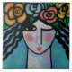 Meine farbenfrohe abstrakte Malerei einer Frau mit Rose in ihren Haaren auf Keramik Kachel gedruckt