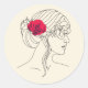 Frau mit Rote Rose auf dem Haar Runder Aufkleber