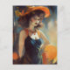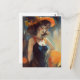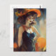 Frau mit schwarzem Kleid mit orangefarbenen Gurten Postkarte