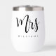 Thermalweintumbler mit dem Text "Mrs." in einem eleganten Kalligraphie-Stil Skript-Schriftart, zusammen mit dem Namen unten.