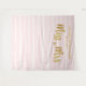 Eine schicke, schlichte, elegante und elegante Brautparty-Kulisse mit dem Titel "Miss to Mrs." mit einem rosa Aquarellhintergrund mit handgezeichnet Streifen, modernem Kalligrafieschrift mit Goldüberlagerung (das ist ein digitaler Effekt, nicht echte Folie) und Typografie in einer goldenen Farbe. Ein elegantes, zeitloses Design, das traditionelles, formales Hochzeitsdesign mit moderner Skriptkalligraphie und einem trendigen Layout verbindet.
