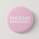 Frau Präsidentin! Moderne Typografie hellrosa Taste. Weißer fett formatierter Text auf hellrosa bearbeitbarem Farbhintergrund. Man kann es personalisieren und einzigartig machen. Feiern Sie den Präsidenten der Nation am Tag der Amtseinführung des Präsidenten. Auch kann dies ein großartiges Geschenk zum Feiern einer weiblichen Chefin, die Präsident geworden ist. Präsident eines internationalen Unternehmens, eines Konzerns, eines kleinen Unternehmens, Chef, Präsident Ihrer Klasse, Studentenpräsident, etc.