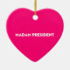 Frau Präsidentin! Moderne Typografie minimalistisch heiß rosa Herz Weihnachtsschmuck. Weißer, fett formatierter Text auf heißen rosa bearbeitbaren Farbhintergrund. Man kann es personalisieren und einzigartig machen. Feiern Sie den Präsidenten der Nation am Tag der Amtseinführung des Präsidenten. Auch kann dies ein großartiges Geschenk zum Feiern einer weiblichen Chefin, die Präsident geworden ist. Präsident eines internationalen Unternehmens, eines Konzerns, eines kleinen Unternehmens, Chef, Präsident Ihrer Klasse, Studentenpräsident, etc.