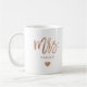 Diese stilvolle Tasse sagt "Mrs." in trendy, Imitate Rose goldene Schrift Typografie, mit einem Spot für Ihren Nachnamen und ein passendes Herz.