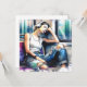 Ai Kunst, die eine Frau in der U-Bahn in einem Panzertop darstellt, rippte Jeans, die nur abschüttelt und Musik auf ihren Kopfhörern hört.