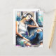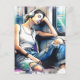 Frau schläft in der U-Bahn und hört Musik Postkarte