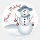 Frau Snowman mit ihrem blauen Hut und Bogen für die Ferien.