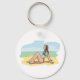 Frau in einem Bikini-Sonnenbad. Dieses Design wirkt auf diesem Schlüsselanhänger wirklich effektiv