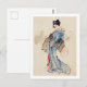 Frau steht mit einem Fan, Hokusai Postkarte