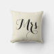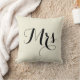 Frau Pillow im Schwarzen auf heller beige Hintergrundfarbe, mit gestreifter schwarzer und heller Beigerückseite. Teil eines Herrn und der Frau Paar. Kundengerecht. Hintergrundfarbe, Text und Textfarbe können geändert werden.