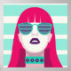 Eine Frau mit rotem Haar, die eine Sonnenbrille trägt. Dieses Design sieht wirklich effektiv aus auf diesem Poster