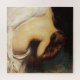 Dieses Design zeigt ein Gemälde des amerikanischen Impressionisten Joseph DeCamp (1858-1923). Es zeigt das barste Hinterteil einer schönen Frau, während sie sich anmutig auf ihrem Bett zurücklehnt. Ihre Beine sind um die weiße Decke, die auf ihrem Bett sitzt, umwickelt, aber ihre bloßen Füße sind sichtbar. Die ganze cremige Haut auf ihrem Rücken ist exponiert. Sie trocknet sich das Haar, nachdem sie gebadet hat. Die Frau hält ihr langes braunes Haar in der Hand, während sie versucht, es zu trocknen. Ihr Haar ist lustvoll. Die Haltung der Frau ist schwül und sinnlich. Das Originalwerk wurde 1899 von Joseph DeCamp gemalt.