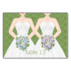 Frau und Frau zwei Brautpaare in Hochzeitskleider mit Blumenbouquets - Hochzeitstischkarten Homosexuelle / Lesben Stolz Hochzeit / zivile Zeremonie Tischkarten. Designer-Homosexuelle Hochzeitsausstellungen von Ricaso Original artwork©delightful-doodles.com