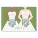 Frau und Frau zwei Brautpaare in Hochzeitskleider mit Blumenbouquets - Hochzeitstischkarten Homosexuelle / Lesben Stolz Hochzeit / zivile Zeremonie Tischkarten. Designer-Homosexuelle Hochzeitsausstellungen von Ricaso Original artwork©delightful-doodles.com