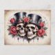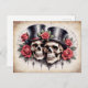 Frau und Herr Skulls mit Top-Hut und Rose Postkarte
