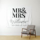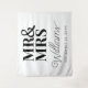 Mr & Mrs. Modern und Elegant Wedding Verlobung Brautparty Backdrop Tapestry Banner für Fotos. Personalisieren Sie die Vorlage mit Ihrem Nachnamen und Datum Ihrer Hochzeit, Verlobung oder Jubiläum.