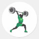 Dieses Design ist eine Frau, die Gewicht hebt. Der Gewichtslifter ist grün gekleidet und hat ein paar sehr schwere Gewichte über ihrem Kopf. Diese Frau sieht gut aus, wenn sie das Design gewichtet