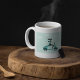 Eine Frau, die auf einem Roller mitfährt. Dieses Design sieht auf dieser Tasse wirklich effektiv aus
