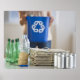 Frauen, die Plastikflaschen, Dosen und Poster