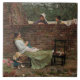Dieses Design zeigt ein Gemälde des englischen Künstlers John William Waterhouse (1849-1917). Es zeigt eine Frauengruppe, die einen angenehmen Chat über der Gartenmauer hat. Eine Frau sitzt mit den Füßen auf einem Stuhl; neben ihr ist ein kleines Mädchen. Zwei andere Frauen sind auf der anderen Seite der Ziegelwand und plaudern mit ihr. Die Frauen sind vermutlich Nachbarinnen in einer lokalen Gemeinschaft. Das Originalwerk wurde 1885 gemalt.