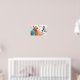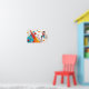 Illustration einer Frau, die eine farbenfrohe Wand klettert