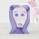 Portrait einer Frau mit langen Haaren in Soft Lila und Blau, Zeichnend Skihütten, Spirituelle Kunst, Das Portrait spiegelt die Gefühle dieser Frau im Moment des zeichnend. Art Grußkarte, können Sie ändern oder löschen Sie den Insidertext