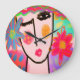 Meine trendige abstrakte Malerei einer Frau mit Blume macht diese hübsche Wanduhr zu einem farbenfrohen Kunstwerk!