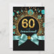 Die 60. Geburtstagsfeier der Frau mit aquamarinen blauen und goldenen Punkten und Sternexplosion. Diese wunderschöne aquamarine und goldene 60. Geburtstagsfeier ist leicht für Ihre Veranstaltung angepasst, indem Sie einfach Ihre Details in den Schriftart Stil und Farbe und Wortlaut Ihrer Wahl. Dies ist ein gedrucktes Design ohne echte Juwelen, Glitzer, Bögen, etc.