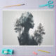 "Ethereal Echoes" Dieses digitale Kunstwerk zeigt die überbelichtete Silhouette eines Frauenprofils, nahtlos in eine ruhige Waldszene integriert. Die Komposition schafft eine ätherische Atmosphäre und verwischt die Grenzen zwischen der Menschheit und der natürlichen Welt. Die komplexen Muster innerhalb der Silhouette, die möglicherweise Blume oder Himmelskörper repräsentieren, heben die harmonische Verbindung zwischen Mensch und Umwelt hervor. Das Bild besticht durch seine Mischung aus menschlicher Form und dem friedlichen Wesen der Natur und bietet eine visuelle Erkundung der intimen Verbindung, die wir mit der Welt um uns herum teilen.