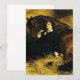 Karte mit Sir Edwin Henry Landseers Ölgemälde The Shrew Tamed oder The Hübsch Horsebreaker (1861). Eine elegante Frau in schwarzen Kleidersesseln neben einem schönen braunen Pferd. Ein kleiner Hund beobachtet im Hintergrund. Sie sitzen alle in einer Heu-Scheune. Ein perfektes Geschenk für Pferdefreunde und Viktorianische Kunst.