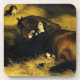 Untersetzer mit Sir Edwin Henry Landseers Ölgemälde The Shrew Tamed oder The Hübsch Horsebreaker (1861). Eine elegante Frau in schwarzen Kleidersesseln neben einem schönen braunen Pferd. Ein kleiner Hund beobachtet im Hintergrund. Sie sitzen alle in einer Heu-Scheune. Ein perfektes Geschenk für Pferdefreunde und Viktorianische Kunst.