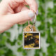 Schlüsselanhänger mit Sir Edwin Henry Landseers Ölgemälde The Shrew Tamed oder The Hübsch Horsebreaker (1861). Eine elegante Frau in schwarzen Kleidersesseln neben einem schönen braunen Pferd. Ein kleiner Hund beobachtet im Hintergrund. Sie sitzen alle in einer Heu-Scheune. Ein perfektes Geschenk für Pferdefreunde und Viktorianische Kunst.