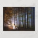 Frauen wandern mit einem Wolf durch einen Zauberwa Postkarte