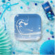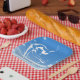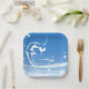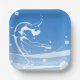 Eine Skaten-Illustration in Weiß auf blauem Hintergrund. Dieses Design wirkt auf diese Paper-Teller sehr effektiv