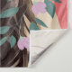 Frauenfrau hübsches Gesicht, Porträtskizze, tropische Pflanze, farbige Formen Hintergrund