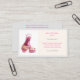 Eine stilvolle und berufliche Visitenkarte für einen Schuhladen, die Mode und Stil reflektiert. Die Karte enthält den Namen, den Slogan und wichtige Informationen. Wichtige Angebote wie trendige Kollektionen, kundenspezifische Anpassung und saisonale Rabatte werden hervorgehoben. Sie können personalisieren.