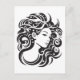 Kissen mit einer Illustration einer schwarz-weiß-schwarzen großen Linie, die das weibliche Porträt einer Jungfrau zeichne